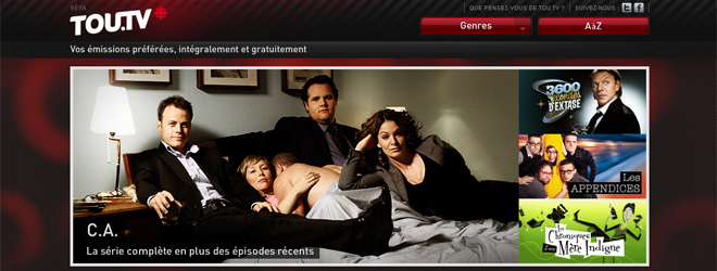 Après les Etats-Unis avec Hulu, c'est au tour du Canada de s'offrir une plate-forme vidéo proposant en streaming et gratuitement différents programmes et notamment des séries : Tou.TV. En l'occurrence, il s'agit d'une initiative de Radio-Canada, la chaîne de télévision nationale publique. Mais elle n'est pas seule puisque sont associés au projet Télé-Québec, TV5 Monde ou encore la RTBF (Belgique) ainsi que les producteurs qui ont bien voulu tenter l'aventure.