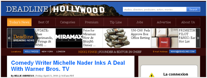 Cependant, d'autres traits de caractère ne sont pas les siens : Tilda fume et boit beaucoup, invite ses sources chez elle pour baiser, fait du chantage pour obtenir des informations. Problème, si le public assimile ce personnage de fiction à Nikki Finke, cela pourrait causer du soucis à la série. Il existe une plainte pour "libel-in-fiction" que l'on pourrait traduire par "diffamation en fiction". Cela parait insensé mais pourtant, ce genre de cas a déjà été porté devant les tribunaux en ce qui concerne Law & Order. Toute la question est donc de savoir à quel point HBO va demander des modifications du brouillon de ce scénario et à quel point Nikki Finke sera susceptible. Pour l'instant, elle refuse de commenter l'affaire.